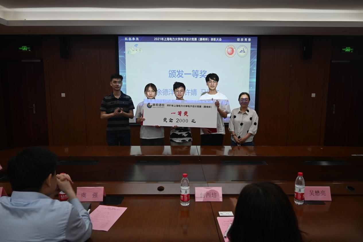6月8日下午,“科创争先,绽放青春”2021年度上海电力大学电子设计竞赛(康希杯)表彰大会于学术楼303成功举行。康希通信科技(上海)有限公司副总裁虞强、人事行政经理吴晓敏受邀与会,出席本次大会的嘉宾有我校教务处副处长吴懋亮、电信学院党委书记何西培、党委副书记周冬梅、副院长赵琰、电信学院科创中心主任江超、自动化工程学院电子设计竞赛负责人康姝艺和戚尔江,本次电子设计竞赛(康希杯)的60余名获奖代表参加。